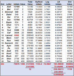 What does all this tell us? It illustrates that no detail of the Torah should be overlooked, and that each of the innumerable details should be analyzed and studied individually and collectively. Each eureka moment awakens more of our dormant consciousness and helps elevate our consciousness closer to the state of Understanding, the place within and beyond the inflection point, the realm beyond the limitations of physicality.  It also tells us that each Letter in the Alef-bet is precious and that its origins are primordial, Cosmic, Metaphysical, and Divine, and that they incorporate everything we understand and do not understand about mathematics. This alone stands on its head everything we thought we knew about our universe, our existence, and our place in the universe.