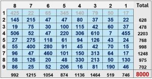 Moreover, the sum of the 55 digits in the set of the 22 counts of the appearances of the 22 Names found within Words of the Torah is 220 or (22 x 10) or (8 x 27.5), while the sum of the 61 digits in the 22 complete values of those 22 Names is also 220, like the 8 Letters Chet (ח) in the 72 Essential Triplets and the 0 Letters Gimmel (ג).