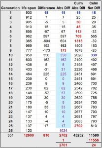 Man was supposed to live 1000 years for every generation, and the entire cycle over the 26 Generations of Adam toward complete elevation and re-integration with Binah Consciousness was to take 26,000 years in line with the 26,000 years of Earth’s Great precession and in the 26,000 parts of a minute in the Hebrew Great Day, all as in the appellation of Binah, Elef (אלף), meaning 1000, and the 26 value of the Name YHVH (יהוה).  Instead, Man was reduced to sediment 974 times before those 26 Generations began and even those 26 Generations were wiped out completely once and partially purged several more times according to the Torah. In total, the 26 Generations lasted 12,600 years or (300 x 42) years, and thus (26,00012,600) = 13,400 years were left on the table, as in (200 x 67), the numerical value (67) of Binah (בינה), while 126 is also the value of the squaring of the Name of the Consciousness Cloud of Adonai (א אד אדנ אדני). Moreover, as we know from the Arizal, the triangular geometry of these 4 components is (1 + 15 + 1540 + 2145) = 3701, as in the numerical value of the 42-Letter Name Matrix, further establishing the metaphysical bond between these all-important Clouds of Consciousness.