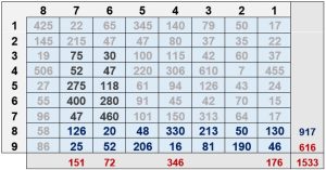We should keep in mind that there are 999 possible values that could fill this Matrix for each position so finding so many significant ones amongst the (72 x 999) possibilities is extraordinary in itself, even without considering the multiple layers of symmetry involving their totals, subtotals, and submatrices, and their square roots and cube roots, and their ordinal values and their ordinal locations, and moreover considering that they are not values but the numeric translations of specific alphabet triplets that unfold into the 3 most significant verses in the entire Torah. We also need to keep in mind that these numbers only provide us with the clues to the pathways that the actual Triplets connect with.