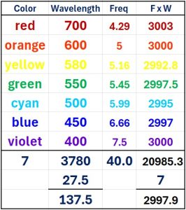 | Index | Word-Value | Wavelength | Words | Tot’l Value |
